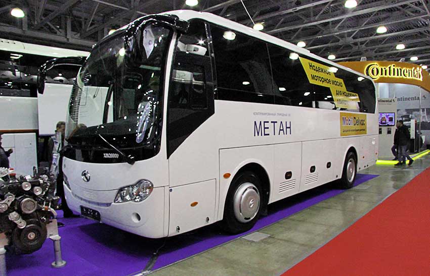 NGV buses from China conquer not only the local market but and develop the export potential of the industry (photo midliner King Long CNG XMQ6900 on the exhibition Bussworld-2016)