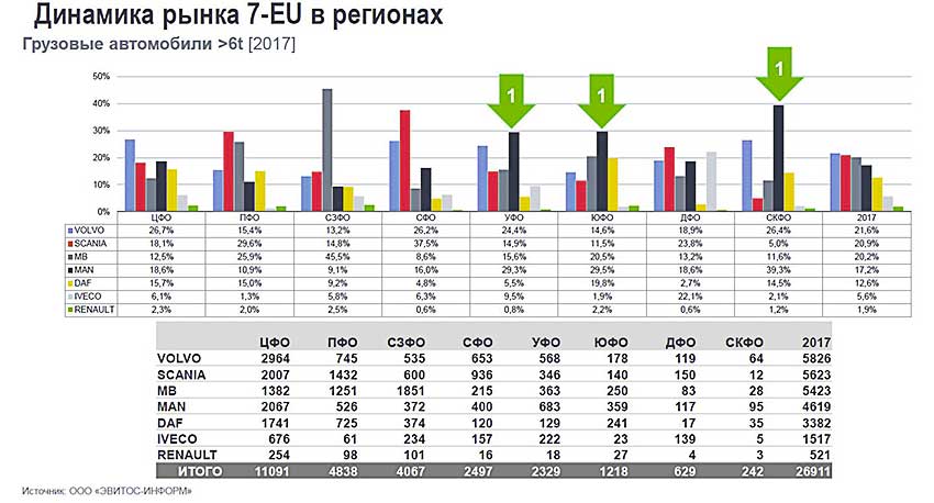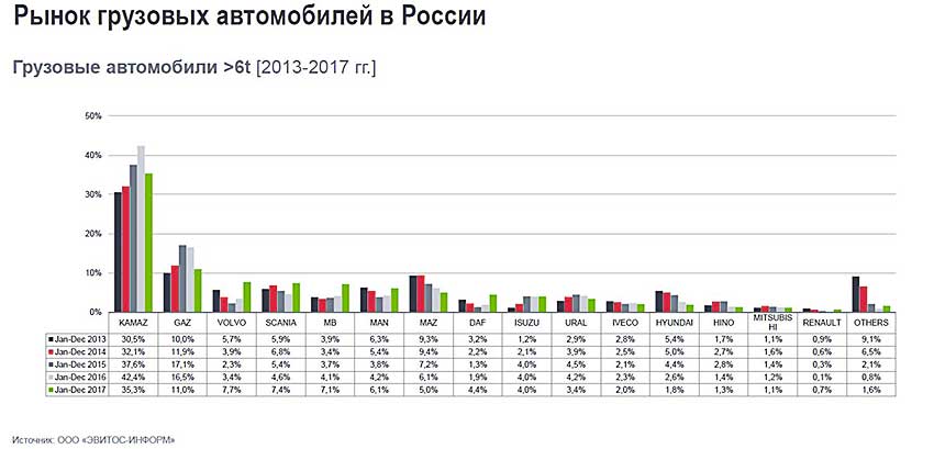 Director of sales of trucks Debris Paul said that in the segment of trucks with GVW over 6 t MAN took 6-th place among all domestic and foreign brands.