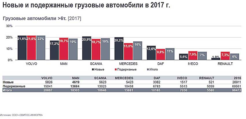 A noticeable reduction of the market of trucks with mileage in favor the growth of the market new technology: 69 561 units vs 86 909 units in 2016.