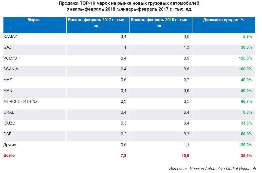 In January-February 2018 the Russian market of new trucks with GVW over 6 tons grew by 35.9% compared with the same month last year and amounted to 10.6 thousand Directly in February of this year was 5.8 thousand sold cars (+35,8%).