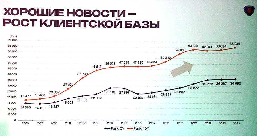 The market definitely needs a comprehensive solution on the basis of superior equipment which is backed up by the 2017. So, partner company OOO "Scania Leasing" financed 54% of all shipped equipment Scania, as the number of acquired service contracts starting at 2014 year has grown on 32%. The number of connected cars is growing 2013 year and to 2017 share connected to FMS vehicles made up 94% of that in the best way proves the necessity of this service for our partners.