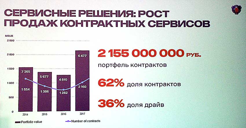 The portfolio of service contracts in 2017 rose to ₽2 billion 155 million (6477 units.), the share of contracts increased to 62%, and share contracts "Drive" to 54% (2161 units chassis against 631 units.